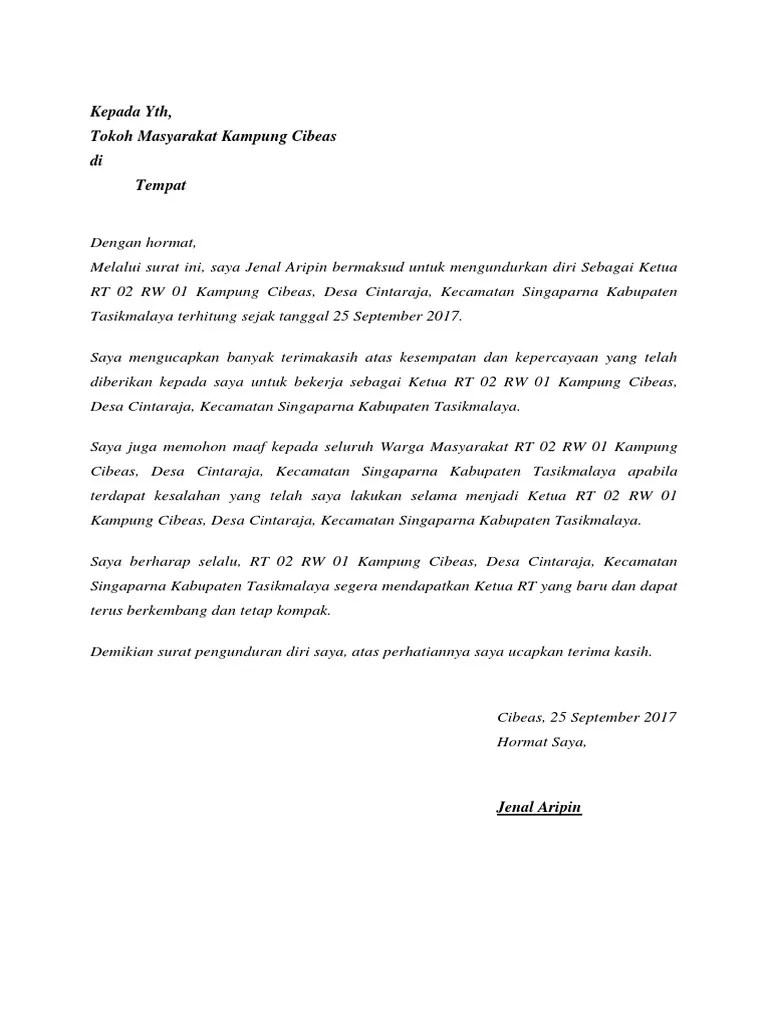 Contoh surat pengunduran diri dari ketua rt contoh surat.